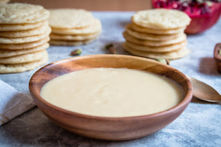 Baghrir is traditionally enjoyed in Morocco with a honey and butter syrup that is often flavoured with orange blossom water. For this reason, I chose to make a Moroccanized version of the crème patissière to layer my baghrirs with honey and orange blossom water!